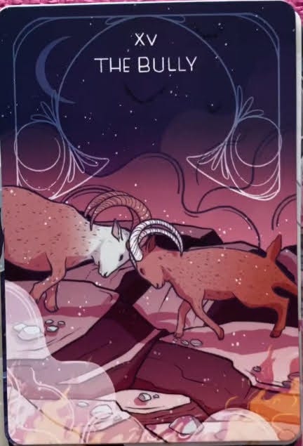 The center picture above was fancily arranged with my own Tarot for Kids deck. The pictures on either end were taken from a general internet search because my own specific cards of The Best Friends and The Bully are missing from my deck!