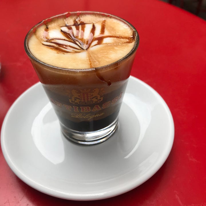 Top two new foods and a favorite drink: maritozzo con panna, squaquerone cheese, café d’orzo. Favorite restaurant in Bologna was Sfoglia Rina.