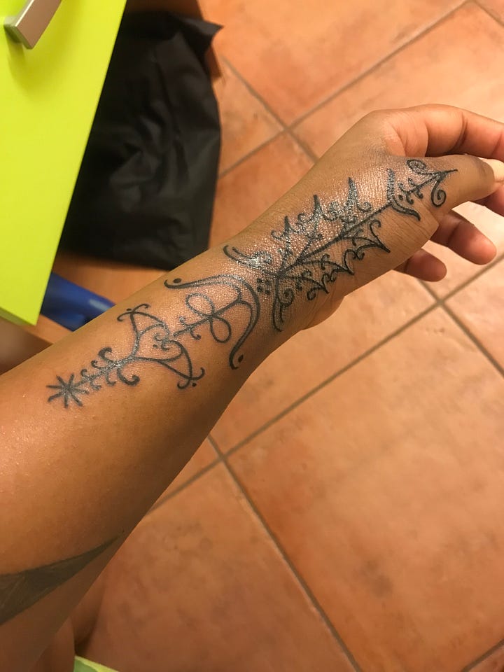 My second week in Bologna, I skipped class for an impulse booking that would result in my fourth tattoo and it is still one of my favorites. It is based on my own design and inspired by my moon sign plus tarot birth cards.